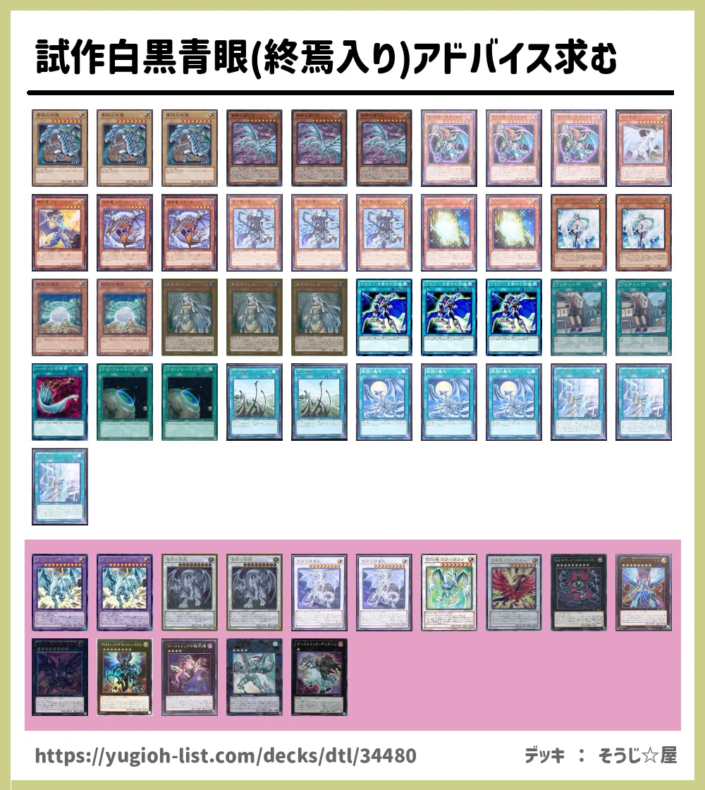 試作白黒青眼(終焉入り)アドバイス求む デッキレシピ・デッキ紹介 (そうじ☆屋さん 投稿日時:2016/01/17 00:00)