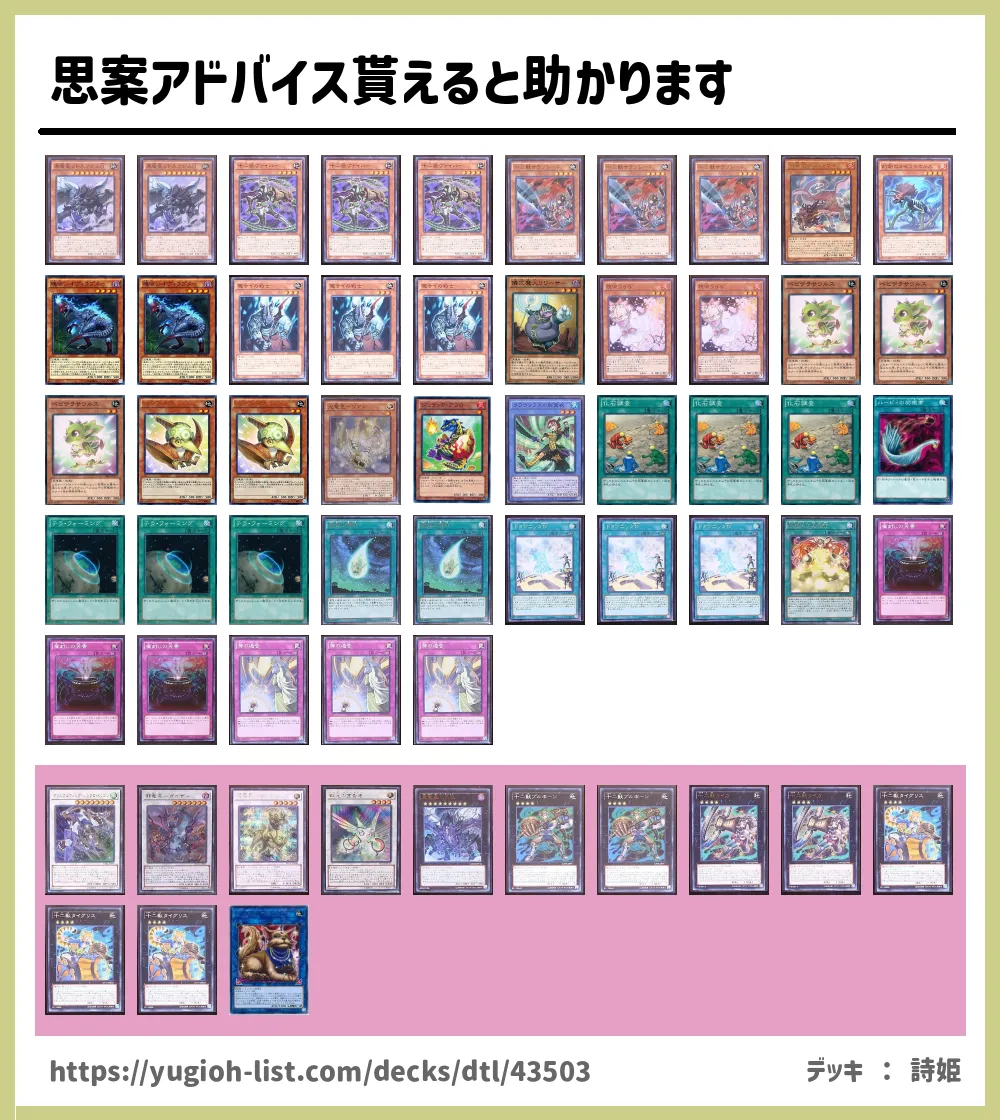 思案アドバイス貰えると助かります デッキレシピ・デッキ紹介 (詩姫さん 投稿日時:2017/06/10 09:04)