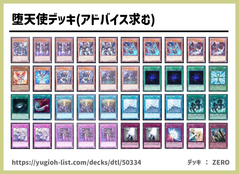 追加事項ですが堕天使デッキは非常に事故りやすいデッキなので名推理、ソルチャ、強貪、などを入れると事故率は軽減しますよ