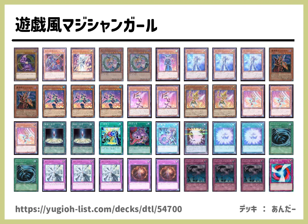 遊戯風マジシャンガール デッキレシピ・デッキ紹介 (あんだーさん 投稿日時:2018/11/21 22:37)