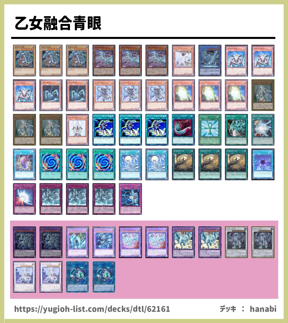 乙女融合青眼 デッキレシピ・デッキ紹介 (hanabiさん 投稿日時:2019/08/28 22:58)