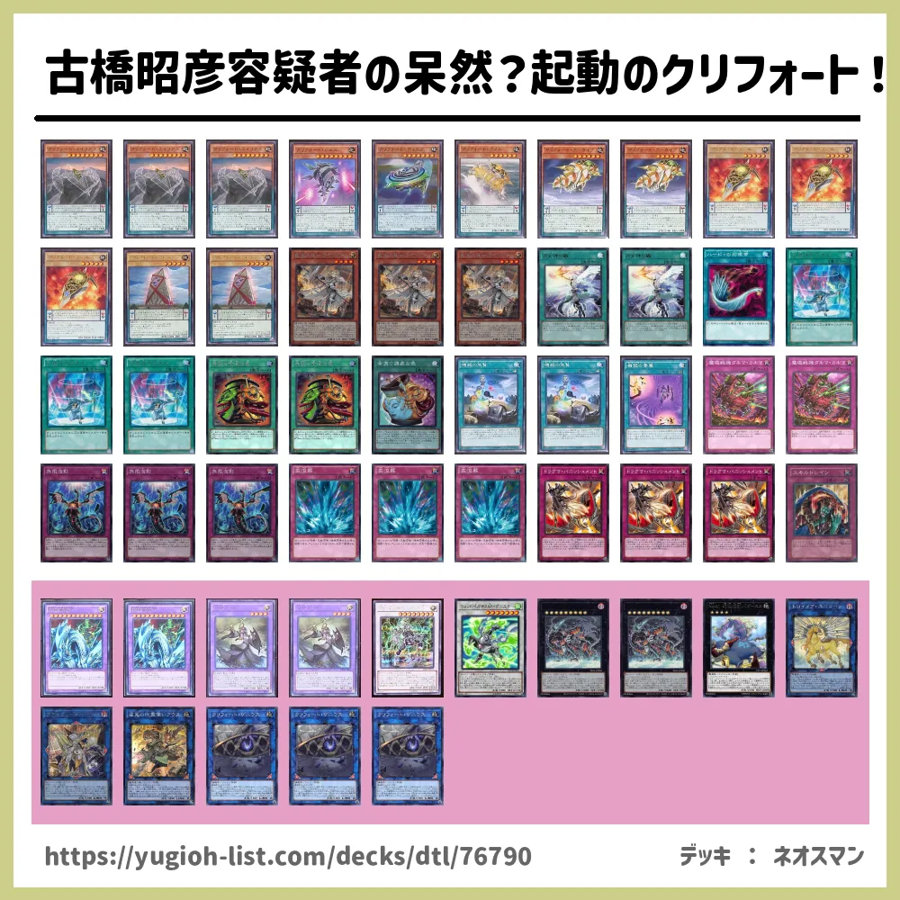 古橋昭彦容疑者の呆然?起動のクリフォート! デッキレシピ・デッキ紹介 (ネオスマンさん 投稿日時:2025/03/26 12:08)