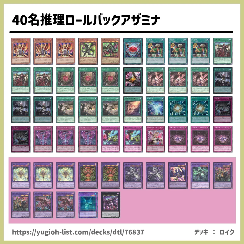 40名推理ロールバックアザミナ デッキレシピ・デッキ紹介 (ロイクさん 投稿日時:2025/04/21 05:07)