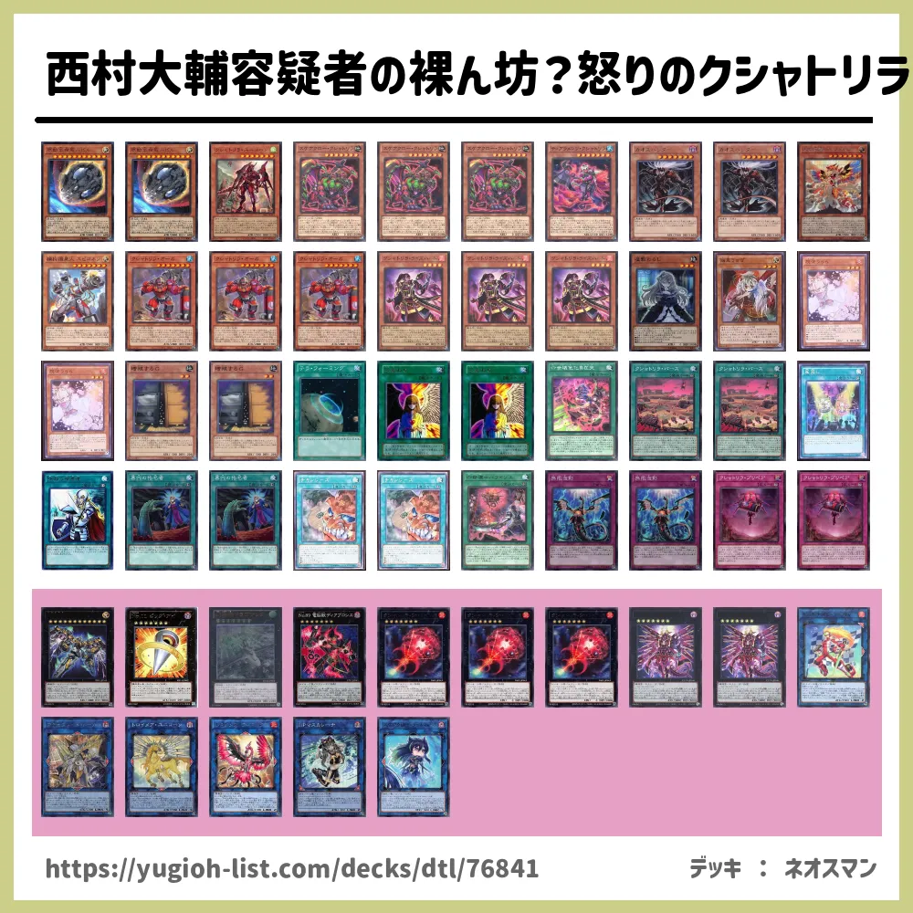 西村大輔容疑者の裸ん坊?怒りのクシャトリラ! デッキレシピ・デッキ紹介 (ネオスマンさん 投稿日時:2025/04/23 23:47)
