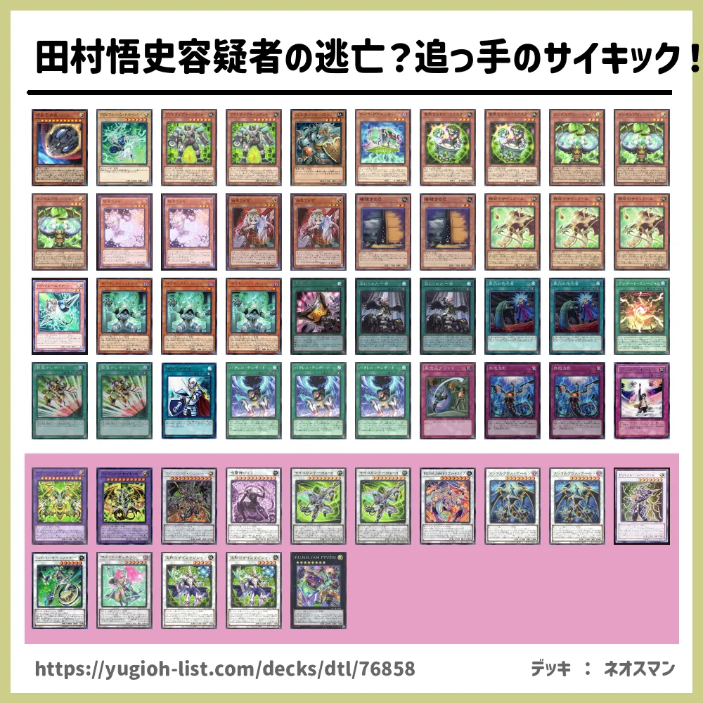 田村悟史容疑者の逃亡?追っ手のサイキック! デッキレシピ・デッキ紹介 (ネオスマンさん 投稿日時:2025/05/01 18:27)