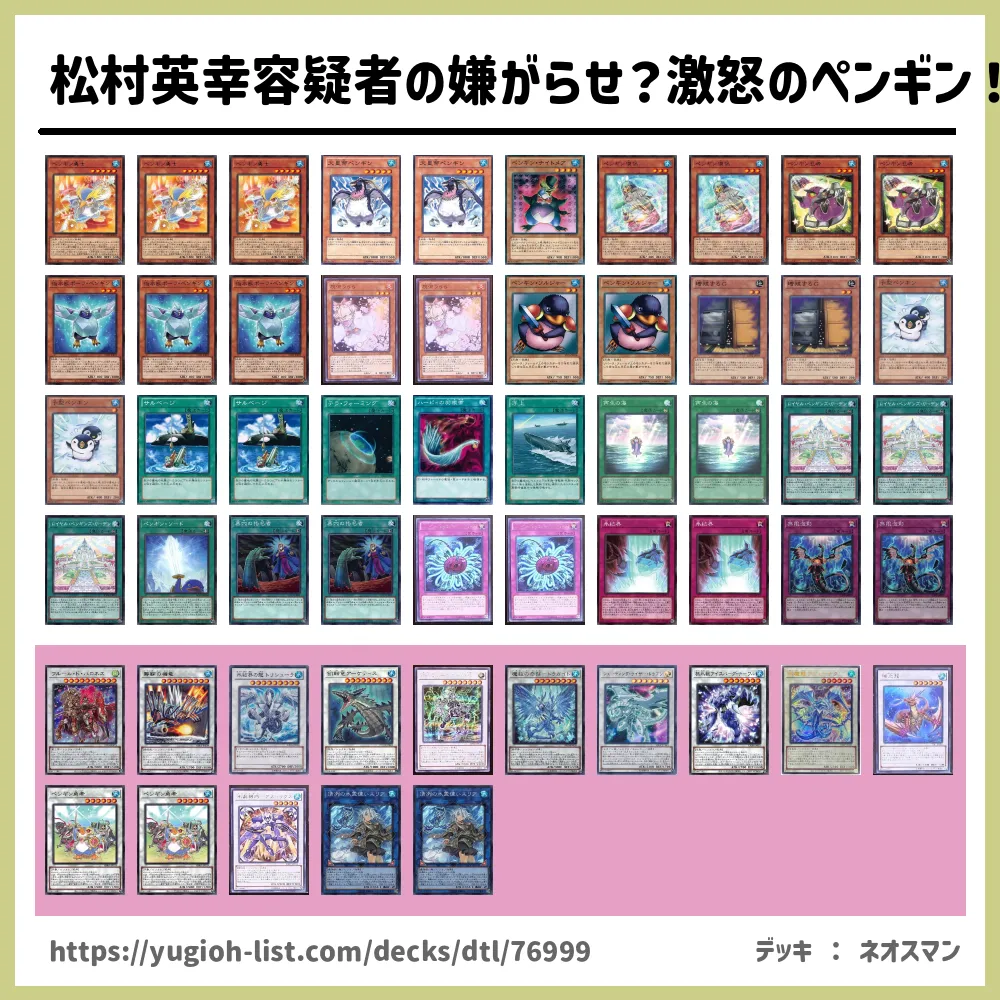 松村英幸容疑者の嫌がらせ?激怒のペンギン! デッキレシピ・デッキ紹介 (ネオスマンさん 投稿日時:2025/06/25 15:14)