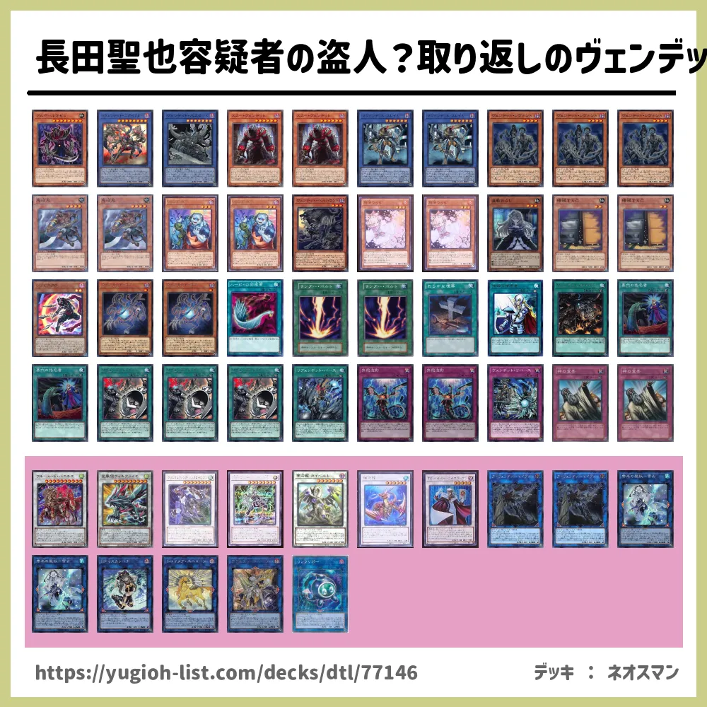長田聖也容疑者の盗人?取り返しのヴェンデット! デッキレシピ・デッキ紹介 (ネオスマンさん 投稿日時:2025/09/11 09:20)