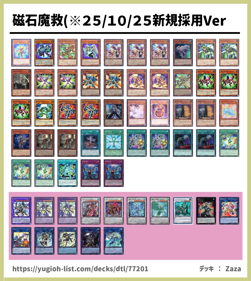 磁石魔救(※25/10/25新規採用Ver デッキレシピ・デッキ紹介 (Zazaさん 投稿日時:2025/10/28 00:53)