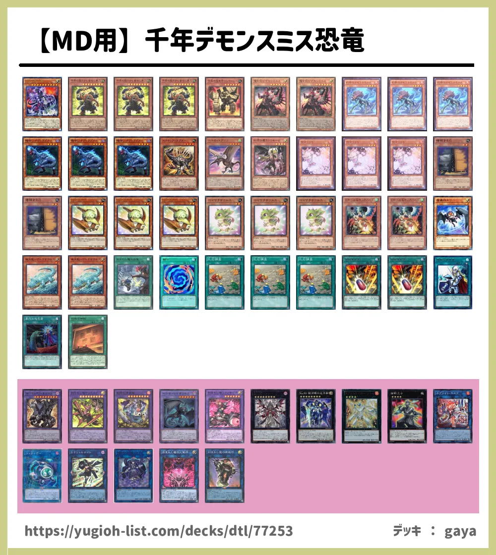 【MD用】千年デモンスミス恐竜 デッキレシピ・デッキ紹介 (gayaさん 投稿日時:2025/12/05 23:56)