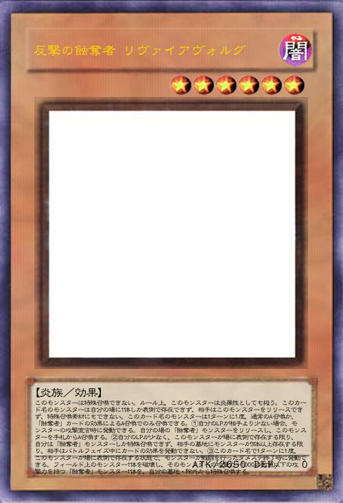 【炎族/効果】 このモンスターは特殊召喚できない。ルール上、このモンスターは炎属性としても扱う。このカード名のモンスターは自分の場に1体しか表側で存在できず、相手はこのモンスターをリリースできず、特殊召喚素材にもできない。このカード名のモンスターは1ターンに1度、通常のA召喚か、「蝕奪者」カードの効果によるA召喚でのみ召喚できる。①自分のLPが相手より少ない場合、モンスターの攻撃宣言時に発動できる。自分の場の「蝕奪者」モンスターをリリースし、このモンスターを手札からA召喚する。②自分のLPが少なく、このモンスターが場に表側で存在する限り、自分は「蝕奪者」モンスターしか特殊召喚できず、相手の墓地にモンスターが3体以上存在する限り、相手はバトルフェイズ中にカードの効果を発動できない。③このカード名で1ターンに1度、このモンスターが場に表側で存在する状態で、モンスターが戦闘を行ったダメステ終了時に発動できる。フィールド上のモンスター1体を破壊し、そのモンスターの攻撃力+1000の数値以下の攻撃力を持つ「蝕奪者」モンスター1体を、自分の墓地・除外から特殊召喚する。 |