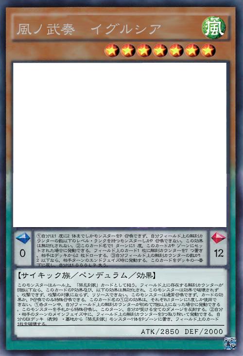 【サイキック族/ペンデュラム/効果】 このモンスターはルール上、「禁忌刻家」カードとして扱う。フィールド上に存在する解刻カウンターが5個以下なら、このカードのP効果及び、以下の効果は無効化され、このモンスターは効果で破壊されず、攻撃できず、攻撃の対象にならず、リリースできない。このモンスターは通常召喚できず、カードの効果か、P召喚でのみ特殊召喚できる。このカード名の①②の効果は、それぞれ1ターンに1度しか使用できない。①各ターン中、自分フィールド上の解刻カウンターが初めて7個以上になった場合に発動できる。このモンスターを手札から特殊召喚し、このターン、自分が受ける全てのダメージを反射する。②自分・相手のターンのメインフェイズ中に、フィールド上の解刻カウンターを3つ取り除いて発動できる。自分のEXデッキ(表側)・墓地から「禁忌刻家」モンスター1体をPゾーンに置き、フィールド上のカード1枚を破壊する。 ①自分は1度に2体までしかモンスターをP召喚できず、自分フィールド上の解刻カウンターの数以下のレベル・ランクを持つモンスターしかP召喚できない。この効果は無効化されない。②このカード名で1ターンに1度、このカードがPゾーンにセットされた場合に発動できる。フィールド上のカード1枚に解刻カウンターを7つ置き、相手はデッキから2枚ドローする。③自分フィールド上の解刻カウンターの数が12以下なら、相手ターンのエンドフェイズ時に発動する。このカードをデッキの一番下に戻し、自分は1000LP失う。 |
