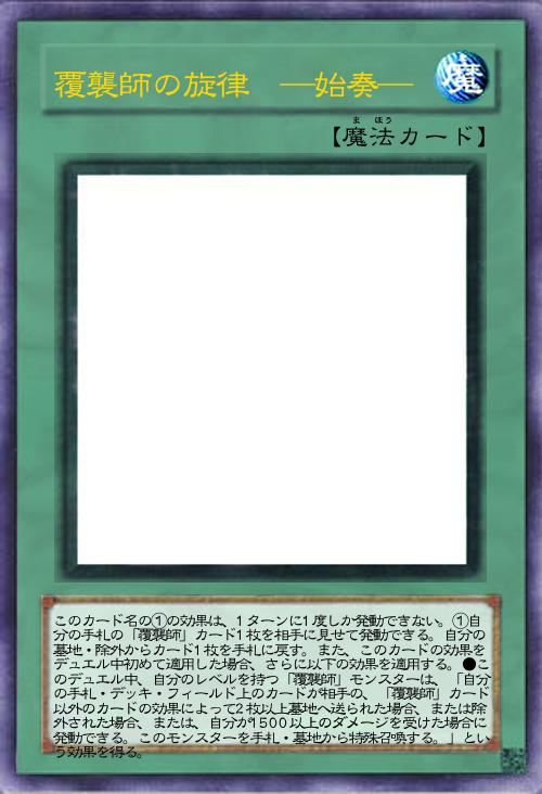 このカード名の①の効果は、1ターンに1度しか発動できない。①自分の手札の「覆襲師」カード1枚を相手に見せて発動できる。自分の墓地・除外からカード1枚を手札に戻す。また、このカードの効果をデュエル中初めて適用した場合、さらに以下の効果を適用する。●このデュエル中、自分のレベルを持つ「覆襲師」モンスターは、「自分の手札・デッキ・フィールド上のカードが相手の、「覆襲師」カード以外のカードの効果によって2枚以上墓地へ送られた場合、または除外された場合、または、自分が1500以上のダメージを受けた場合に発動できる。このモンスターを手札・墓地から特殊召喚する。」という効果を得る。 |