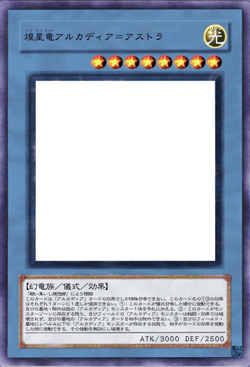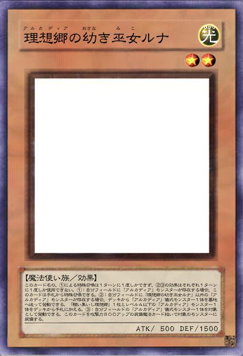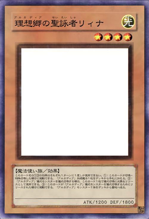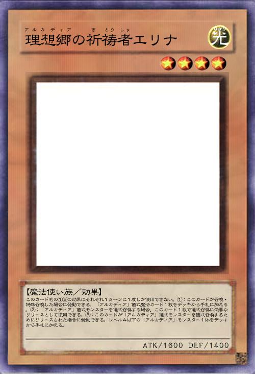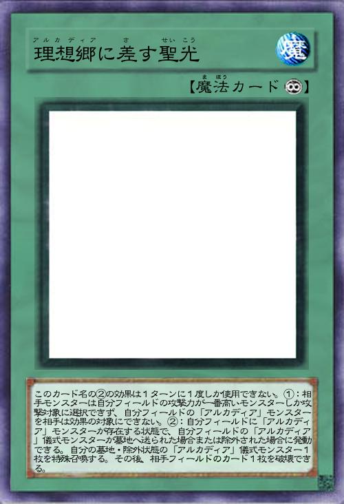 このカード名の②の効果は1ターンに1度しか使用できない。①:相手モンスターは自分フィールドの攻撃力が一番高いモンスターしか攻撃対象に選択できず、自分フィールドの「アルカディア」モンスターを相手は効果の対象にできない。②:自分フィールドに「アルカディア」モンスターが存在する状態で、自分フィールドの「アルカディア」儀式モンスターが墓地へ送られた場合または除外された場合に発動できる。自分の墓地・除外状態の「アルカディア」儀式モンスター1枚を特殊召喚する。その後、相手フィールドのカード1枚を破壊できる。 |