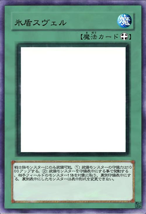 戦士族モンスターにのみ装備可能。①:装備モンスターの守備力は1000アップする。②:装備モンスターを守備表示にする事で発動する。相手フィールドのモンスター1体を対象に取り、裏側守備表示にする。裏側表示にしたモンスターは表示形式を変更できない。 |