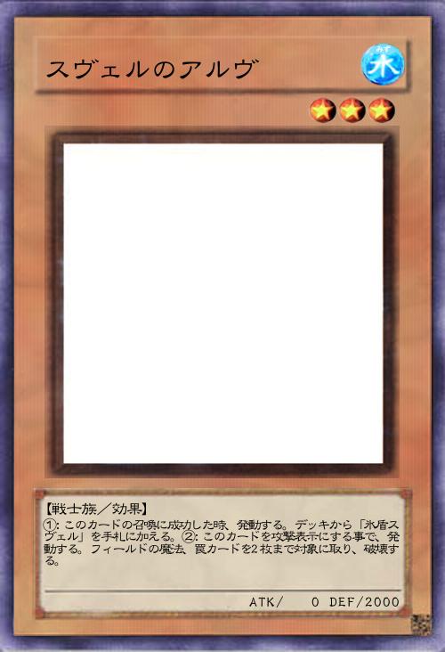 ①:手札から装備魔法カード1枚を墓地へ送る事で、発動する。自分は2枚ドローする。このカードを発動したターン、自分は通常召喚に加えて1度だけ、メインフェイズに「アルヴ」モンスター1体を召喚できる。 |