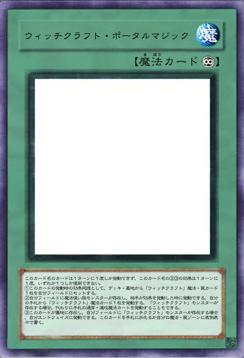 このカード名のカードは1ターンに1度しか発動できず、このカード名の②③の効果は1ターンに1度、いずれか1つしか使用できない。 ①このカードの発動時の効果処理として、デッキ・墓地から「ウィッチクラフト」魔法・罠カード1枚を自分フィールドにセットする。 ②自分フィールドに魔法使い族モンスターが存在し、相手が効果を発動した時に発動できる。自分の手札から「ウィッチクラフト」魔法カード1枚を発動する。「ウィッチクラフト」モンスターが存在する場合、代わりに手札の通常・速攻魔法カードを発動することもできる。 ③このカードが墓地に存在し、自分フィールドに「ウィッチクラフト」モンスターが存在する場合、自分エンドフェイズに発動できる。このカードを手札に加えるか自分の魔法・罠ゾーンに表側表示で置く。 |