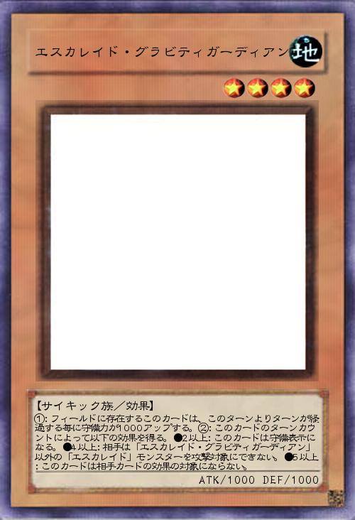 【サイキック族/効果】 ①:フィールドに存在するこのカードは、このターンよりターンが経過する毎に守備力が1000アップする。②:このカードのターンカウントによって以下の効果を得る。●2以上:このカードは守備表示になる。●4以上:相手は「エスカレイド・グラビティガーディアン」以外の「エスカレイド」モンスターを攻撃対象にできない。●5以上:このカードは相手カードの効果の対象にならない。 |