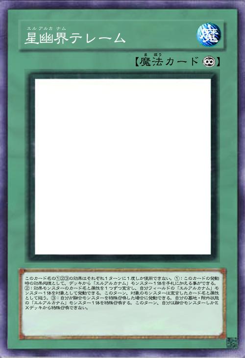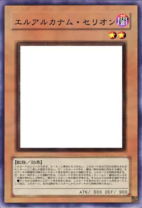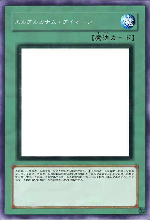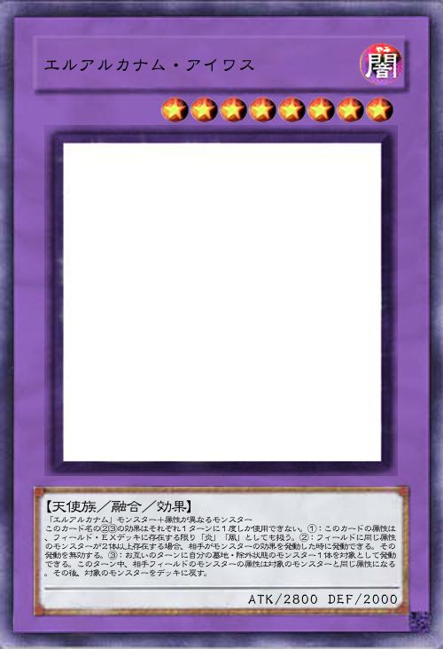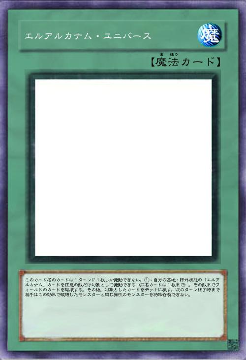 このカード名の①②の効果はそれぞれ1ターンに1度しか使用できない。①:自分フィールド・墓地のモンスターを融合素材として除外し、融合モンスター1体を融合召喚する。自分フィールドの表側表示モンスターが「エルアルカナム」モンスターのみの場合、相手フィールドのモンスターも融合素材として除外する事ができる。②:このカードが墓地に存在し自分フィールドに融合モンスターが存在する場合、デッキから「エルアルカナム」カード1枚を墓地へ送って発動できる。このカードをデッキの一番下に戻す。 |