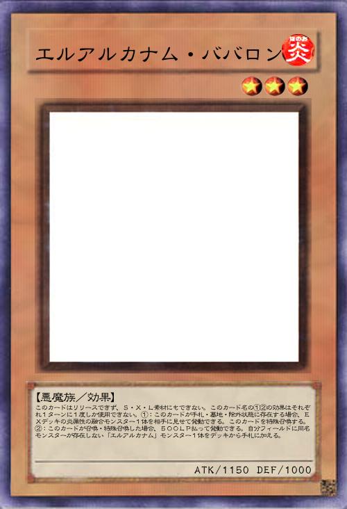 このカード名の①②の効果はそれぞれ1ターンに1度しか使用できない。①:自分の墓地・除外状態の「エルアルカナム」カード1枚を手札に加える。フィールドに同じ属性のモンスターが2体以上存在する場合、代わりにデッキから手札に加える事もできる。②:このカードが墓地に存在し、自分フィールドに融合モンスターが存在する場合、墓地の「エルアルカナム」モンスター1体を対象として発動できる。このカードをデッキに戻し、対象のモンスターを手札に加える。 |