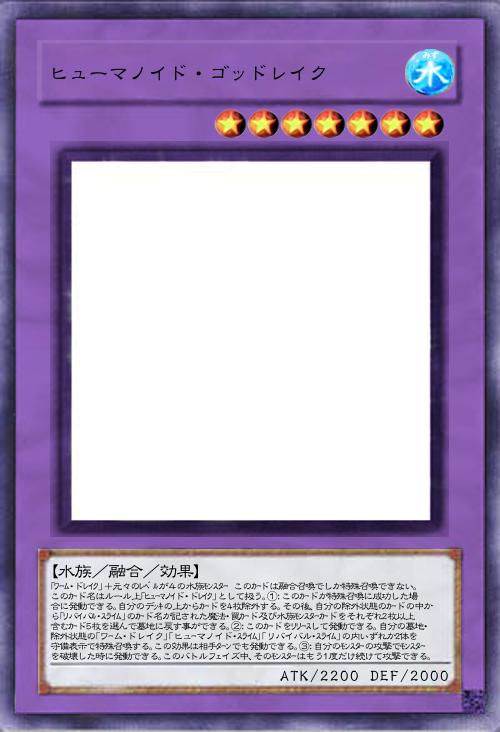 このカード名の②の効果は1ターンに1度しか使用できない。①:自分の手札・フィールド・墓地の「リバイバルスライム」または「ワーム・ドレイク」を含むモンスターを融合素材として除外し、融合モンスター1体を融合召喚する。この効果で融合召喚した効果モンスター以外のモンスターは以下の効果を得る。●このカードがモンスターゾーンに存在する限り、自分の魔法&罠ゾーンの既に表側表示で存在しているカードは相手の効果の対象にならず、相手の効果では破壊されない。②:自分フィールドに「リバイバルスライム」、元々の属性が「神」となるモンスター、水族の融合モンスターのいずれかのモンスターが存在する場合、墓地のこのカードを除外して発動できる。フィールドの魔法・罠カード1枚を選んで破壊する。 |