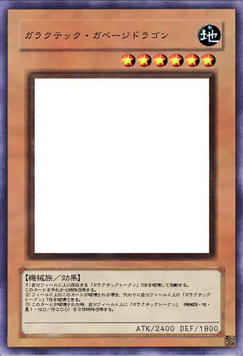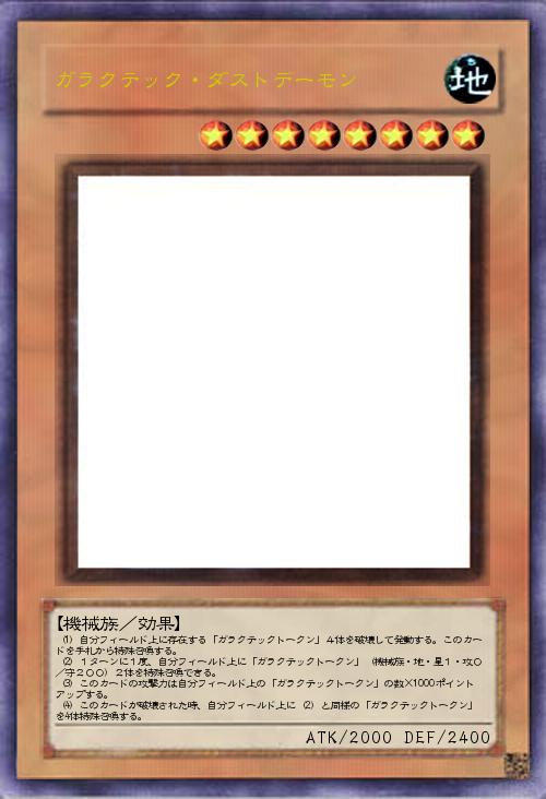 (1)相手モンスターの攻撃宣言時に発動する事ができる。 そのモンスターを破壊し、自分フィールド上に「ガラクテックトークン」(機械族・地・星1・攻0/守200)を2体特殊召喚する。 |