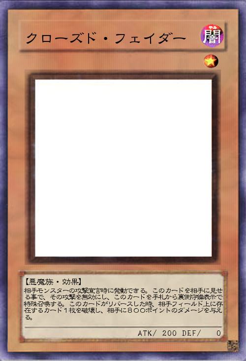 【アンデット族・効果】 自分フィールド上に裏側守備表示モンスターが存在する場合、手札のこのカードを相手に見せる事で、このカードを裏側守備表示で特殊召喚できる。また、このカードがリバースした時、自分の墓地の「クローズド」と名のついたモンスターを2体まで選択し、裏側守備表示で特殊召喚する。 |