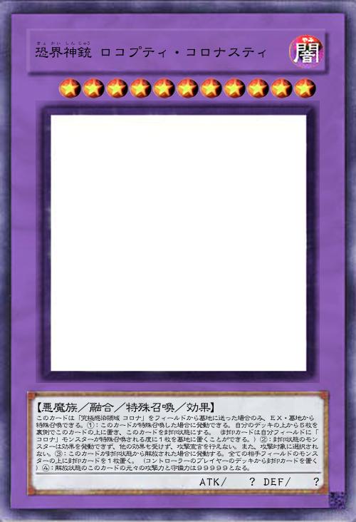 【悪魔族/融合/特殊召喚/効果】 このカードは「究極感染領域 コロナ」をフィールドから墓地に送った場合のみ、EX・墓地から特殊召喚できる。①:このカードが特殊召喚した場合に発動できる。自分のデッキの上から5枚を裏側でこのカードの上に置き、このカードを封印状態にする。(封印カードは自分フィールドに「コロナ」モンスターが特殊召喚される度に1枚を墓地に置くことができる。)②:封印状態のモンスターは効果を発動できず、他の効果も受けず、攻撃宣言を行えない。また、攻撃対象に選択されない。③:このカードが封印状態から解放された場合に発動する。全ての相手フィールドのモンスターの上に封印カードを1枚置く。(コントローラーのプレイヤーのデッキから封印カードを置く)④:解放状態のこのカードの元々の攻撃力と守備力は99999となる。 |