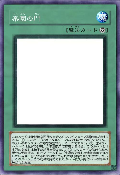 このカードは発動後、フィールドに残り続け、自分のターンで数えて2回目のスタンバイフェイズ開始時に除外される。①:自分フィールド・墓地に「生冥の卵塊」が存在しない場合に相手が魔法・モンスターの効果を発動した時に発動できる。その発動を無効にして破壊す。②:このカードが魔法&罠ゾーンに表側表示で存在する限り自分フィールドに「生冥の卵塊」が存在しない場合、自分の通常のドローは2枚となり、「生冥の卵塊」とカードに記されたカードの効果以外でデッキからカードを手札に加えられず、モンスターを特殊召喚することもできない。③:表側表示のこのカードがフィールドを離れた場合に発動する。自分フィールドに「生冥の卵塊」が存在しない場合、自分の手札・フィールドのカードを全て除外する。 |