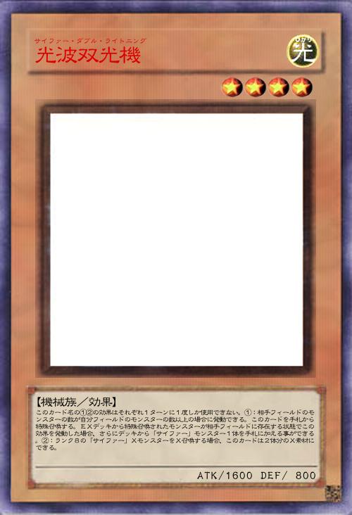 【機械族/効果】 このカード名の①②の効果はそれぞれ1ターンに1度しか使用できない。 ①:自分・相手メインフェイズ、自分フィールドに同名モンスターが2体以上存在する場合、その内の1体をリリースして発動できる。このカードを手札から特殊召喚する。その後、デッキから「光波迷犬機」1体を特殊召喚する事ができる。 ②:自分フィールドのモンスター1体をリリースし、自分の墓地の「光波迷犬機」以外の「サイファー」モンスター1体を対象として発動できる。そのモンスターを手札に加える。 |