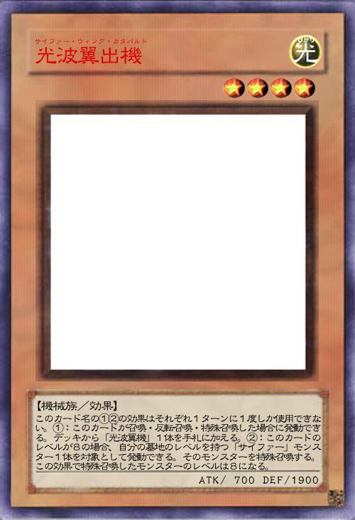 【機械族/効果】 このカード名の①②の効果はそれぞれ1ターンに1度しか使用できない。 ①:このカードを手札から捨てて発動できる。デッキから「光波気円盤」以外の「サイファー」モンスター1体を墓地へ送る。 ②:このカードが墓地に存在し、自分フィールドに同名の「サイファー」モンスターが2体以上存在する場合に発動できる。このカードを特殊召喚する。この効果で特殊召喚したこのカードは、フィールドから離れた場合に除外される。この効果の発動後、ターン終了時まで自分は「サイファー」モンスターでしか攻撃宣言できない。 |