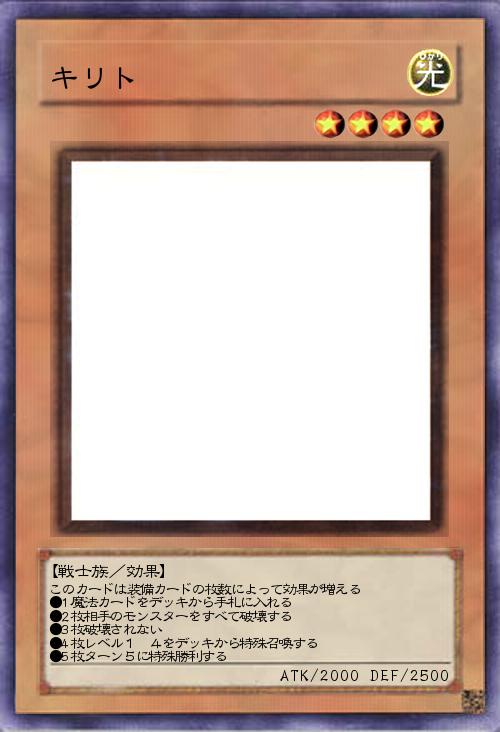 【戦士族/効果】 このカードは装備カードの枚数によって効果が増える ●1魔法カードをデッキから手札に入れる ●2枚相手のモンスターをすべて破壊する ●3枚破壊されない ●4枚レベル1〜4をデッキから特殊召喚する ●5枚ターン5に特殊勝利する |