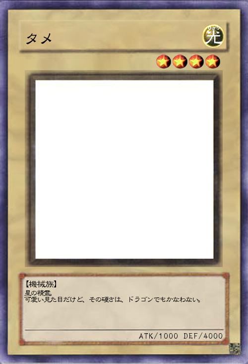 ①自分フィールド上の「タメ」と名に付くモンスターが破壊されるときに発動する。その破壊を無効化し、デッキから「タメ」を1体召喚する。この効果で出したモンスターの攻撃力は半分になる。 |