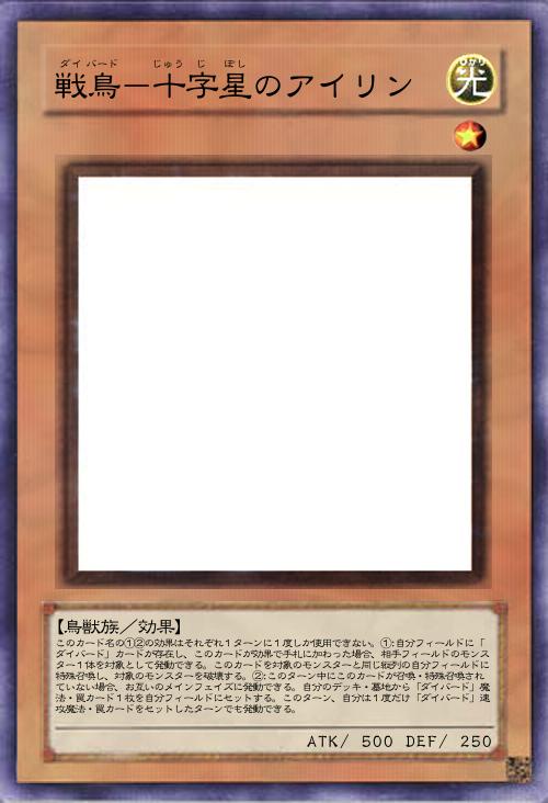 このカード名の①②の効果はそれぞれ1ターンに1度しか使用できない。①:自分フィールドに鳥獣族モンスター以外の表側表示モンスターが存在しない場合に発動できる。デッキから「ダイバード」モンスター1体を手札に加える。②:墓地のこのカードを除外して発動できる。このターン、自分の鳥獣族モンスターは自身の攻撃力以下の攻撃力を持つ相手モンスターの効果を受けない。 |