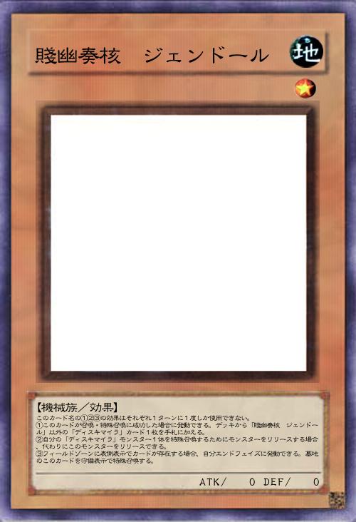 【機械族/効果】 このカード名の①②③の効果はそれぞれ1ターンに1度しか使用できない。 ①このカードが召喚・特殊召喚に成功した場合に発動できる。デッキから「賤幽奏核 ジェンドール」以外の「ディスキマイラ」カード1枚を手札に加える。 ②自分の「ディスキマイラ」モンスター1体を特殊召喚するためにモンスターをリリースする場合、代わりにこのモンスターをリリースできる。 ③フィールドゾーンに表側表示でカードが存在する場合、自分エンドフェイズに発動できる。墓地のこのカードを守備表示で特殊召喚する。 |
