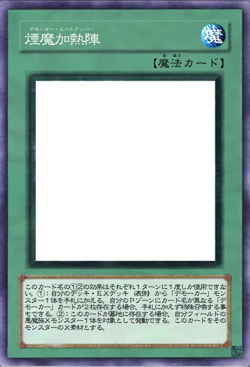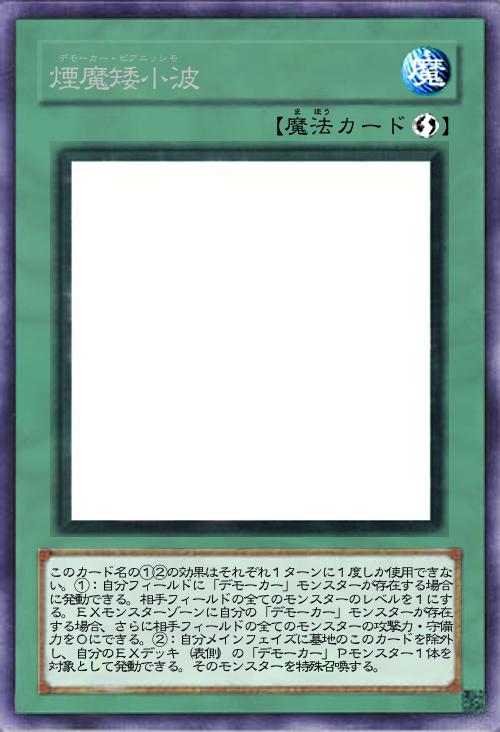このカード名の①②の効果はそれぞれ1ターンに1度しか使用できない。①:自分のデッキ・EXデッキ(表側)から「デモーカー」モンスター1体を手札に加える。自分のPゾーンにカード名が異なる「デモーカー」カードが2枚存在する場合、手札に加えず特殊召喚する事もできる。②:このカードが墓地に存在する場合、自分フィールドの悪魔族Xモンスター1体を対象として発動できる。このカードをそのモンスターのX素材とする。 |