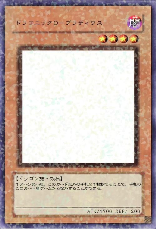 【サイキック族・効果】 このカードが召喚に成功したとき、デッキからレベル3以下の「ドラゴニックD」と名のついたモンスター1体をゲームから除外する。 |