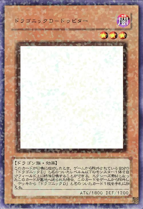 【ドラゴン族・効果】 このカードが召喚に成功したとき、ゲームから除外されている自分の「ドラゴニックD」と名のついたレベル4以下のモンスター1体を自分フィールド上に特殊召喚することができる。エクシーズ素材となったこのカードが墓地へ送られた場合、このカードをゲームから除外し、デッキから「ドラゴニックD」と名のついたカード1枚を手札に加える。 |