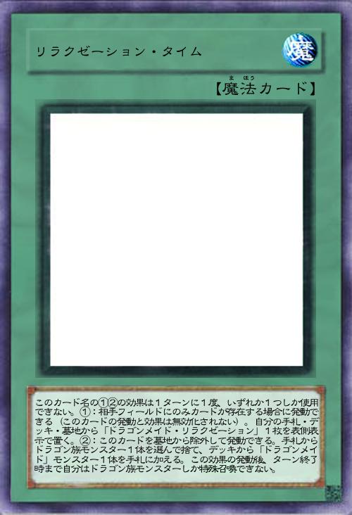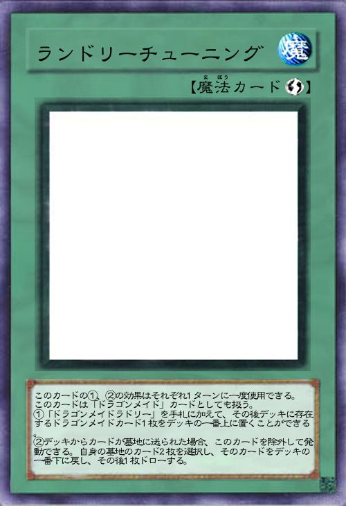 このカード名のカードは1ターンに1枚しか発動できず、発動するターン、自分は「ドラゴンメイド」モンスターしか特殊召喚できない(EXデッキからの特殊召喚は除く)。①:自分フィールドにレベル4以上のモンスターが存在する場合に発動できる。デッキから「ドラゴンメイド」モンスター1体を手札に加える。その後、以下の効果を適用できる。●自分の手札・フィールドから、ドラゴン族融合モンスターカードによって決められた融合素材モンスターを墓地へ送り、その融合モンスター1体をEXデッキから融合召喚する。この際、融合素材モンスターは全て「ドラゴンメイド」モンスターでなければならない。 |