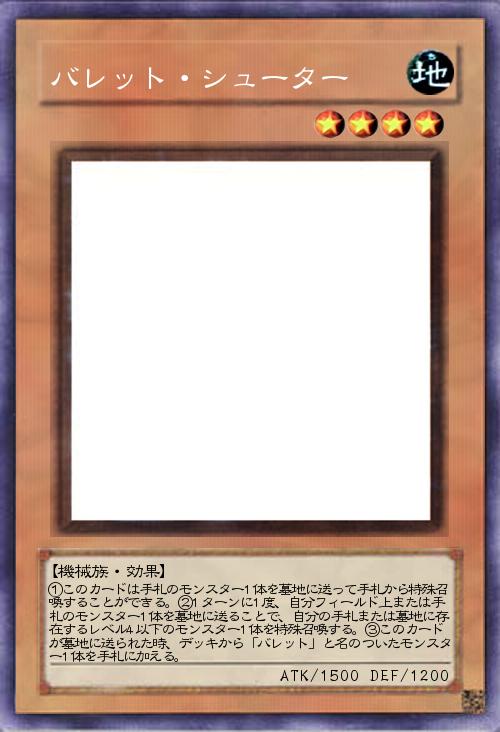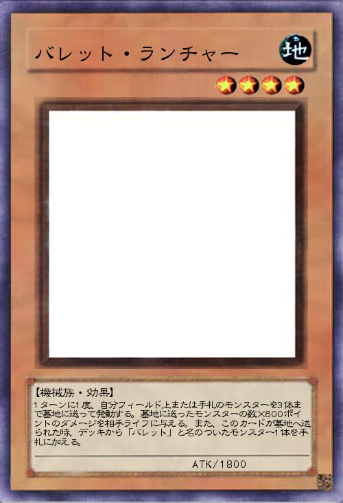 ①1ターンに1度、デッキから「バレット」と名のついたカード1枚を手札に加えることができる。②自分の「バレット」と名のついたカードの効果によって自分フィールド上・手札からモンスターを墓地に送る場合、代わりにデッキからモンスターを墓地に送ることができる。③このカードを墓地に送ることで、自分の墓地に存在する「バレット」と名のついたモンスターをすべて自分の手札に加える。④このカードがフィールドを離れる場合、代わりに自分フィールド上または手札からモンスター1体を墓地に送ることができる。 |