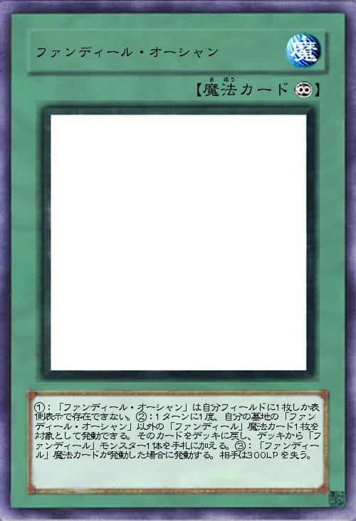 ①:「ファンディール・オーシャン」は自分フィールドに1枚しか表側表示で存在できない。②:1ターンに1度、自分の墓地の「ファンディール・オーシャン」以外の「ファンディール」魔法カード1枚を対象として発動できる。そのカードをデッキに戻し、デッキから「ファンディール」モンスター1体を手札に加える。③:「ファンディール」魔法カードが発動した場合に発動する。相手は300LPを失う。 |