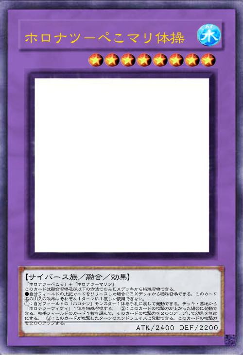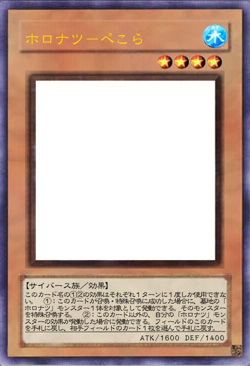 【サイバース族/効果】 このカード名の①③の効果はそれぞれ1ターンに1度しか使用できない。 ①:このカードがドロー以外の方法で手札に加わった場合に発動できる。このカードを特殊召喚する。 ②:このカードは1度のバトルフェイズ中に2回攻撃できる。 ③:このカード以外の、自分の「ホロナツ」モンスターの効果が発動した場合に発動できる。フィールドのこのカードを手札に戻し、相手フィールドのカード1枚を選んで破壊する。 |