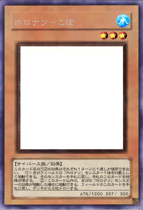 【サイバース族/効果】 このカード名の①②の効果はそれぞれ1ターンに1度しか使用できない。 ①:「ホロナツ」モンスターが自分フィールドから手札に戻った場合に発動できる。手札のこのカードを特殊召喚する。 ②:このカード以外の、自分の「ホロナツ」モンスターの効果が発動した場合に発動できる。フィールドのこのカードを手札に戻し、デッキからレベル3「ホロナツ」モンスター1体の効果を無効にして特殊召喚する。 |