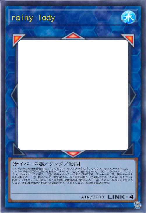 【サイバース族/チューナー/効果】 このカード名の①③の効果はそれぞれ1ターンに1度しか使用できない。 ①:自分メインフェイズに発動できる。このカードを手札から相手のフィールドに特殊召喚し、このカードの元々の持ち主は、自身のデッキから1枚ドローする。フィールドが「雨」状態の場合、この効果は相手ターンにも発動できる。 ②:このカードがフィールドに存在し、自分に「雨」カウンターが置かれている場合、このカード以外のカードのモンスターの効果を発動できない。 ③:このカードが相手フィールドから墓地に送られた場合に発動できる。相手フィールドのカード1枚を選んで手札に戻し、墓地のこのカードを守備表示で特殊召喚する。 |