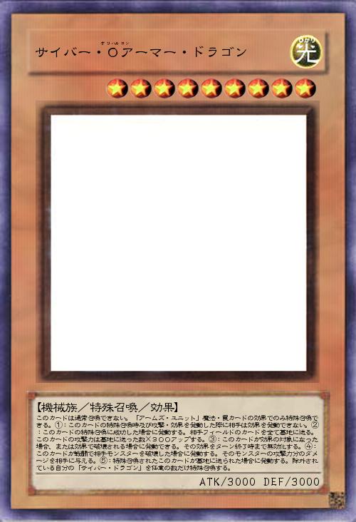①:自分フィールドの「アームズ・ユニット」魔法・罠カードの効果で「ユニット」魔法・罠カードの効果で特殊召喚された「サイバー」モンスターを使用して特殊召喚された「サイバー」モンスター1体と自分フィールド・墓地の「サイバー・ドラゴン」4体を除外して発動できる。デッキ・手札・墓地から「サイバー・Oアーマー・ドラゴン」1体を特殊召喚する。この効果は無効にならず、相手はこのカードの発動時及び特殊召喚時にカードを発動できない。 |