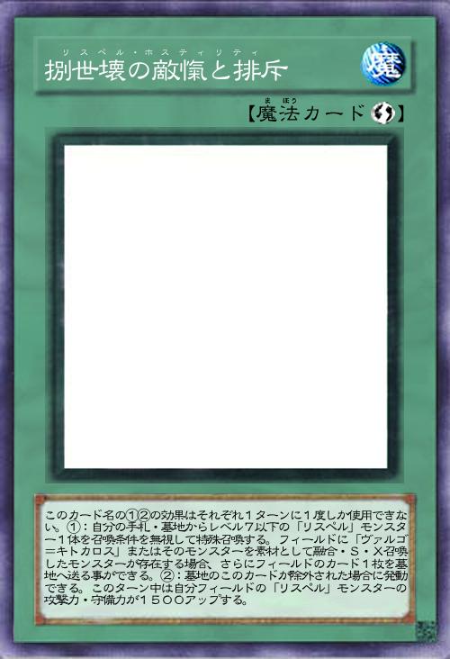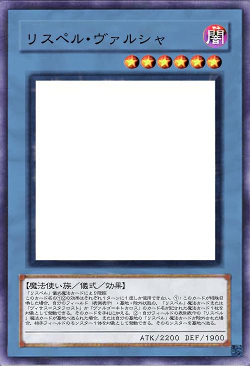 このカード名の①②の効果はそれぞれ1ターンに1度しか使用できない。①:自分の手札・墓地からレベル7以下の「リスペル」モンスター1体を召喚条件を無視して特殊召喚する。フィールドに「ヴァルゴ=キトカロス」またはそのモンスターを素材として融合・S・X召喚したモンスターが存在する場合、さらにフィールドのカード1枚を墓地へ送る事ができる。②:墓地のこのカードが除外された場合に発動できる。このターン中は自分フィールドの「リスペル」モンスターの攻撃力・守備力が1500アップする。 |