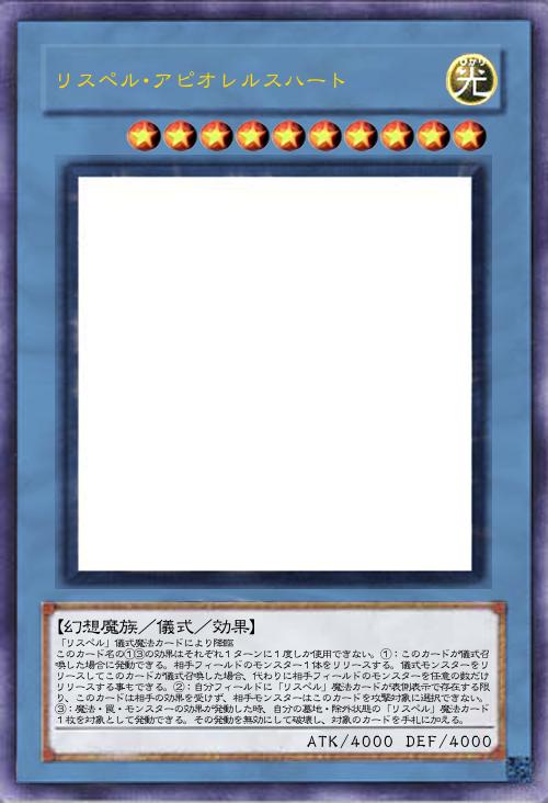 【幻想魔族/儀式/効果】 「リスペル」儀式魔法カードにより降臨 このカード名の①③の効果はそれぞれ1ターンに1度しか使用できない。①:このカードが儀式召喚した場合に発動できる。相手フィールドのモンスター1体をリリースする。儀式モンスターをリリースしてこのカードが儀式召喚した場合、代わりに相手フィールドのモンスターを任意の数だけリリースする事もできる。②:自分フィールドに「リスペル」魔法カードが表側表示で存在する限り、このカードは相手の効果を受けず、相手モンスターはこのカードを攻撃対象に選択できない。③:魔法・罠・モンスターの効果が発動した時、自分の墓地・除外状態の「リスペル」魔法カード1枚を対象として発動できる。その発動を無効にして破壊し、対象のカードを手札に加える。 |