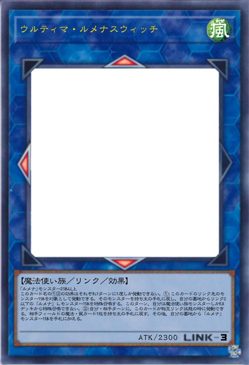 【魔法使い族/リンク/効果】 「ルメナ」モンスター2体以上 このカード名の①②の効果はそれぞれ1ターンに1度しか発動できない。①:このカードのリンク先のモンスター1体を対象として発動できる。そのモンスターを持ち主の手札に戻し、自分の墓地からリンク2以下の「ルメナ」Lモンスター1体を特殊召喚する。このターン、自分は魔法使い族モンスターしかEXデッキから特殊召喚できない。②:自分・相手ターンに、このカードが相互リンク状態の時に発動できる。相手フィールドの魔法・罠カード1枚を持ち主の手札に戻す。その後、自分の墓地から「ルメナ」モンスター1体を手札に加える。 |