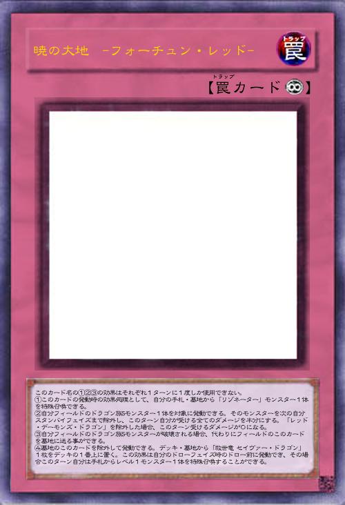 このカード名の①②③の効果はそれぞれ1ターンに1度しか使用できない。 ①このカードの発動時の効果処理として、自分の手札・墓地から「リゾネーター」モンスター1体を特殊召喚できる。 ②自分フィールドのドラゴン族Sモンスター1体を対象に発動できる。そのモンスターを次の自分スタンバイフェイズまで除外し、このターン自分が受ける全てのダメージを半分にする。「レッド・デーモンズ・ドラゴン」を除外した場合、このターン受けるダメージが0になる。 ③自分フィールドのドラゴン族Sモンスターが破壊される場合、代わりにフィールドのこのカードを墓地に送る事ができる。 ④墓地のこのカードを除外して発動できる。デッキ・墓地から「救世竜 セイヴァー・ドラゴン」1枚をデッキの1番上に置く。この効果は自分のドローフェイズ時のドロー前に発動でき、その場合このターン自分は手札からレベル1モンスター1体を特殊召喚することができる。 |