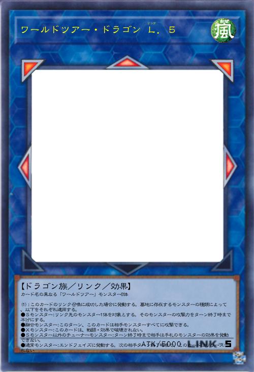 【ドラゴン族/リンク/効果】 カード名の異なる「ワールドツアー」モンスター5体 (1):このカードのリンク召喚に成功した場合に発動する。墓地に存在するモンスターの種類によって、以下をそれぞれ適用する。 ●Sモンスター:リンク先のモンスター1体を対象とする。そのモンスターの攻撃力をターン終了時まで半分にする。 ●融合モンスター:このターン、このカードは相手モンスターすべてに攻撃できる。 ●Xモンスター:このカードは、戦闘・効果で破壊されない。 ●Sモンスター以外のチューナーモンスター:ターン終了時まで相手は手札のモンスターの効果を発動できない。 ●通常モンスター:エンドフェイズに発動する。次の相手ターン終了時まで、このカードはリリースされない |