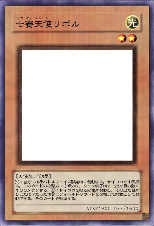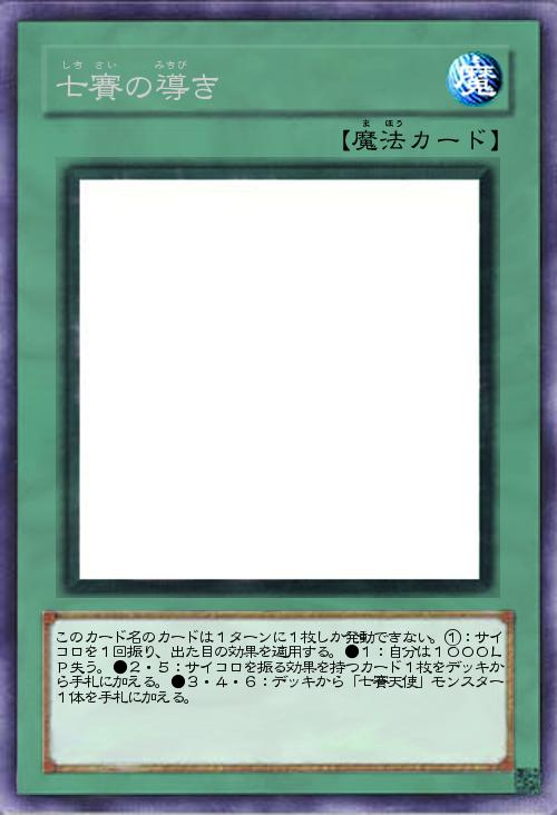 このカード名のカードは1ターンに1枚しか発動できない。①:サイコロを1回振り、出た目の効果を適用する。●1:自分は1000LP失う。●2・5:サイコロを振る効果を持つカード1枚をデッキから手札に加える。●3・4・6:デッキから「七賽天使」モンスター1体を手札に加える。 |
